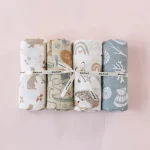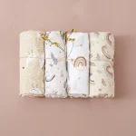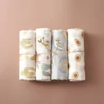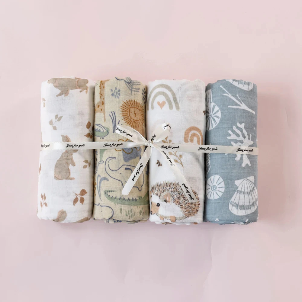 4PCS/Set Bamboo Muslin Swaddle Blanket Baby Blankets Newborn Printed Soft Cotton New Born Infant Receiving Wrap