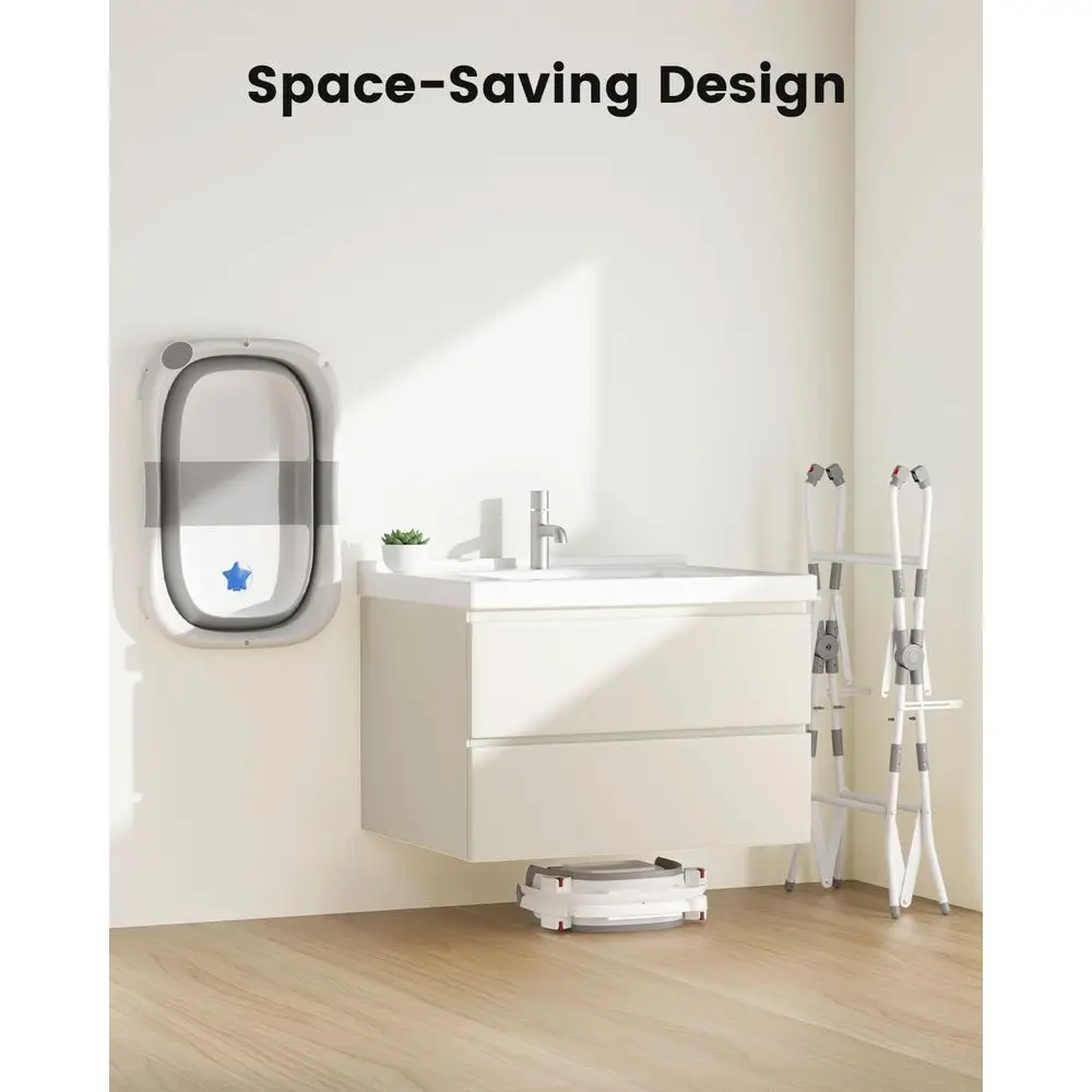 The bath stand is made with high strength iron and PP thermoplastic elastomer. The smooth surface of this foldable baby tub allows for quick and effortless cleaning. Simply wipe with a damp cloth to maintain a hygienic bathing environment, ensuring your toddler’s health and well-being.