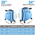 20 inches: about 19.6×9.8×21.6in/49.8×24.9×54.9cm (L*W*H)
