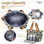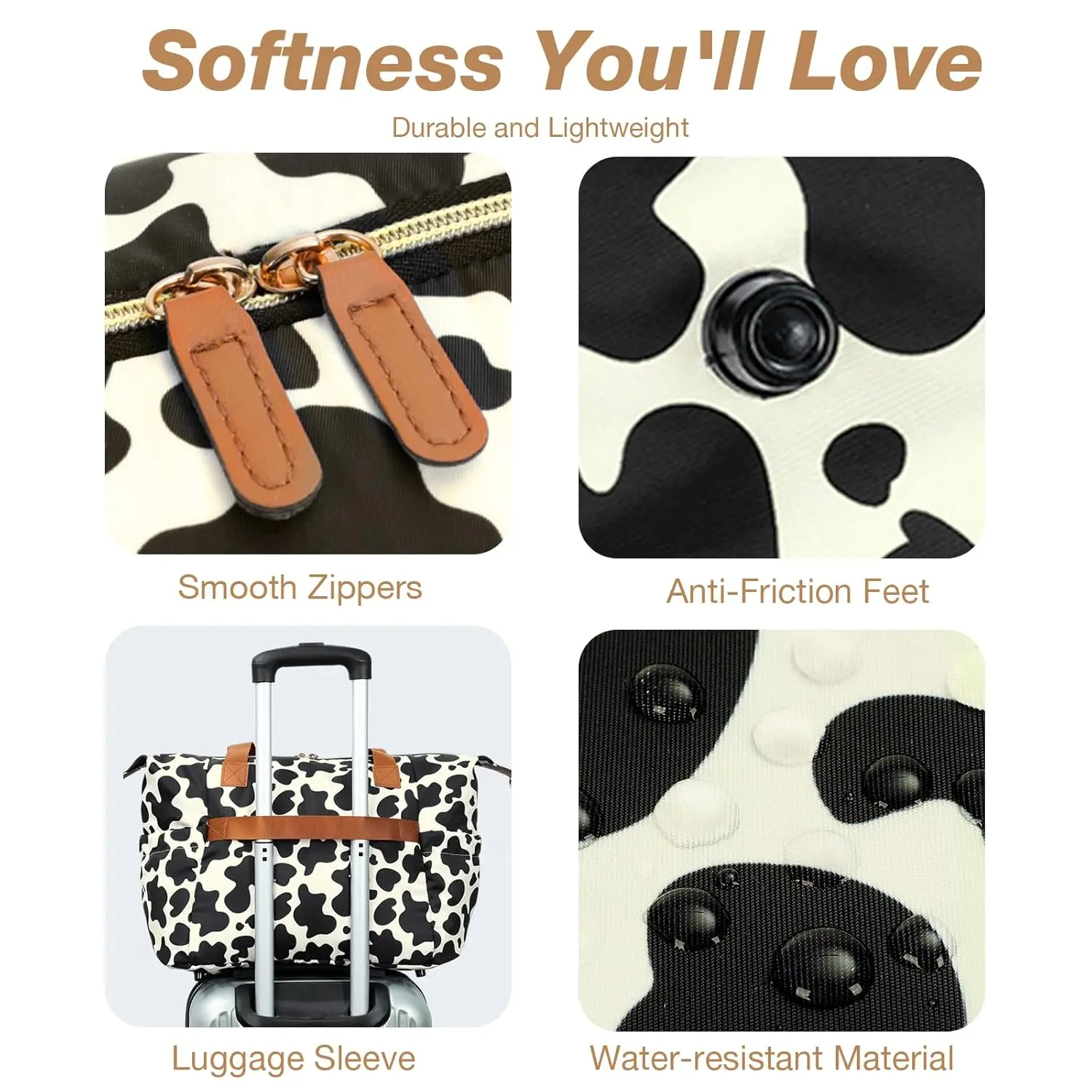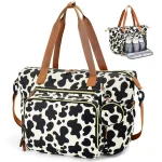 This diaper bag tote is designed to meet all your needs as a parent, combining style, durability, and practicality in one versatile accessory. Made from high-quality tear-resistant polyester fabric with soft materials, it ensures long-lasting use while keeping your baby’s essentials safe and organized. Key Features: – **Spacious Design**: With a large capacity, this bag offers ample room to store everything you and your baby require during outings or travel. It includes 16 pockets for efficient organization, such as dedicated compartments for wet wipes and three thermal bottle holders to keep drinks at the right temperature. – **Durable Construction**: Built with strong zippers and reinforced lining, the bag is lightweight yet capable of handling heavy loads without tearing. Studded feet at the bottom help keep it clean and off the ground, protecting it from dirt and wear. – **Comfortable Carrying Options**: Equipped with a detachable shoulder strap, you can easily carry this bag as a crossbody, shoulder bag, or handbag. The flexible design allows for convenient transport in various situations. Additionally, a handy luggage sleeve makes it simple to attach to suitcases for hassle-free travel. – **Practical Accessories**: The diaper bag comes with essential accessories including a portable changing pad for on-the-go diaper changes and a pacifier case to keep items hygienic and accessible. These features add extra convenience for busy parents. – **Stylish Appearance**: Featuring an attractive cow print pattern, this bag offers a sleek look that appeals to modern parents. It serves as both a functional everyday bag for casual outings and a stylish option for semi-formal occasions. – **Ideal Gift Choice**: As a practical gift idea, this luxury diaper tote is perfect for baby showers or new parents’ registries. It combines fashion with utility, making it an excellent present that supports daily parenting tasks while enhancing style. Overall Benefits: This diaper bag not only helps organize baby essentials efficiently but also provides comfort through its ergonomic design. Its durable materials ensure reliability over time, making it a smart investment for any family on the go.