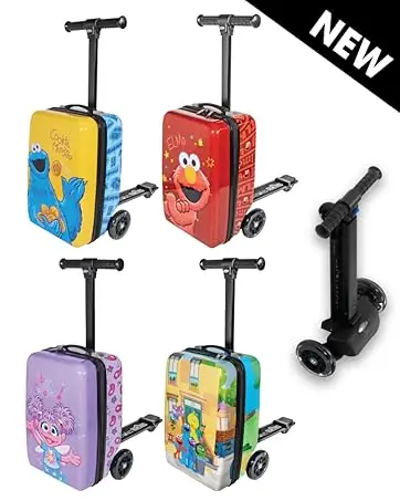 Kiddietotes Scooter Luggage | Lightweight construction and easy turning with a smooth, leaning motion makes this great for toddlers and young children to ride or pull along side them. These bags are roomy enough for all their things and designed to deflect and absorb impacts common while traveling.
